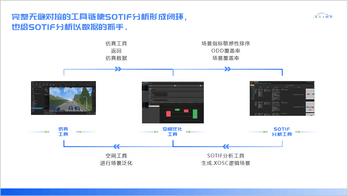 完整⽆缝对接的⼯具链不仅可以使SOTIF分析形成闭环,,,,也可以给SOTIF分析以数据的抓⼿,,,,具体来看流程如下: