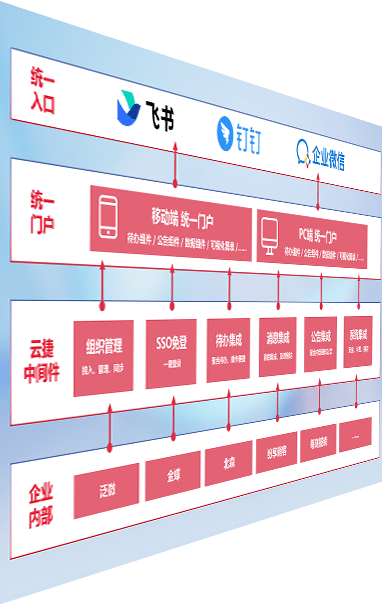 对协作平台提供支持服务,,,支持企业应用与协作平台对接,,包含组织同步、、、消息集成、、、、待办集成等。。。。支持目前主流的协作平台:钉钉、、企微和飞书。。。